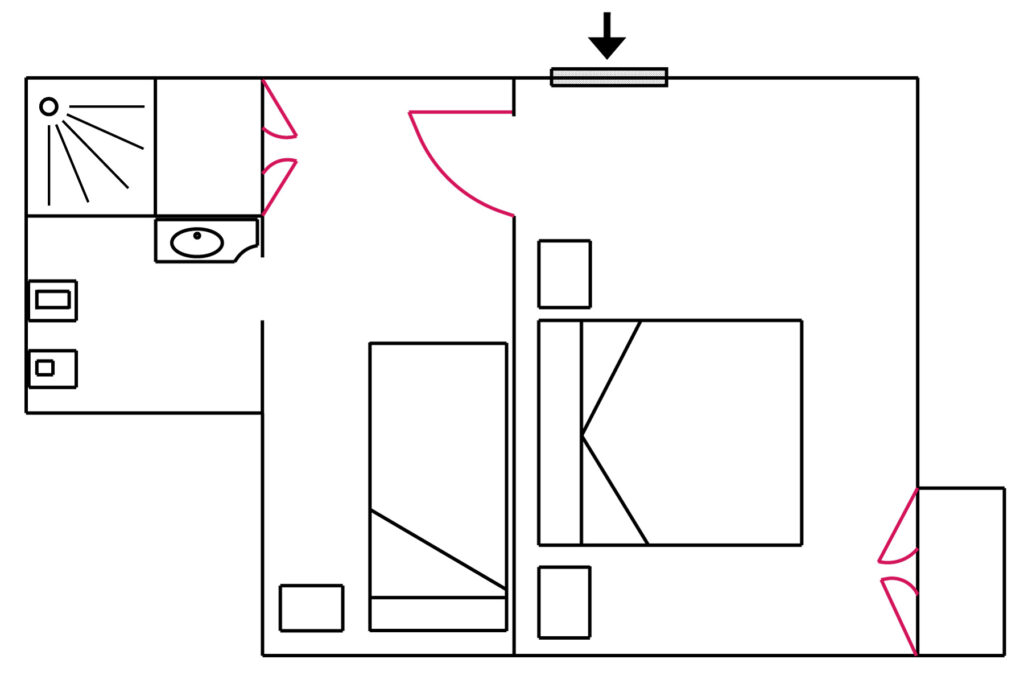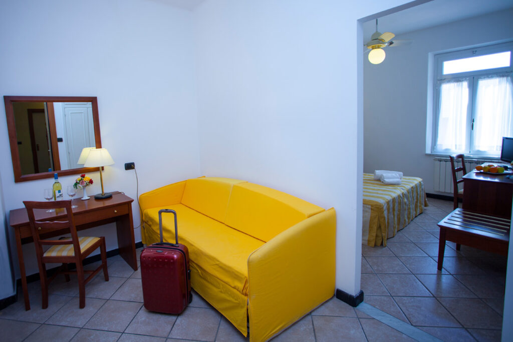 Ideale per chi viaggia in tre e desidera più spazio senza rinunciare al comfort, la Junior Suite è composta da una camera principale e una cameretta comunicante. Gli arredi raffinati e la perfetta insonorizzazione creano un ambiente rilassante, mentre la dotazione completa garantisce un soggiorno senza pensieri: aria condizionata, ventilatore a soffitto, TV satellitare, Wi-Fi gratuito, minibar e cassaforte. Il bagno privato, con finestra, è attrezzato con doccia, set di cortesia e asciugacapelli. Un’opzione perfetta per chi cerca eleganza e funzionalità.